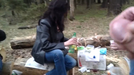 Так получилось, что на пикник мужчина отправился с коллегами. Свежий воздух подействовал на "героя" лучше любого возбудителя. Но поскольку женщины не очень спешили подрочить парню, ему пришлось удовлетворять себя самому (к тому же, он умудрился снять мастурбацию крупным планом на камеру).
