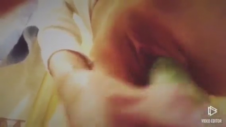 Бесспорно красивая пизденка показана крупным планом не просто так. Ее извращенная хозяйка где-то в интернете на форуме онанисток вычитала, что можно испытывать оргазм от подручных предметов, в том числе и продолговатых овощей. Действительно, если натянуть резинку сверху, подобрать нужный размерчик, то он неплохо заменяет мужской половой орган, предназначенный, в том числе, для удовлетворения похотливых девиц, типа этой. Не понятно как там на счет оргазма, но определенное удовольствие девушка получила, засняв на память первую попытку дрокнуть молоденькую пизденку огурчиком.