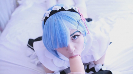 Добро пожаловать домой, хозяин. Я хочу для вас помастурбировать, после чего взять в рот ваш толстый член. Он такой крепки и желанный, жду не дождусь, когда смогу ощутить у себя во рту его плоть. Симпатичная анимешница в синем парике и костюме как у персонажа компьютерной игры легла на спину и сдвинула полосатые морские трусики в сторону, поласкав киску пальчиками. Голубоглазая няшка не выдержала и стала сосать резиновый хуй, давая возможность почувствовать себя тем самым, к кому обращается героиня. Пенис и правда достаточно большой, конечно меньше, чем его рисуют японские хентаисты.