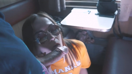 Купе милой пары снято на двоих. Они специально выбрали такой вагон, где меньше всего куплено билетов и отправились путешествовать по бескрайним просторам матушки-России по путям РЖД. В их целях потрахаться, поэтому проводницу попросили не беспокоить какое-то время, пока ребята снимают любительское видео. Парень все еще не привык к своей красотке, охреневая от ее качественной худенькой жопы и идеальной фигуре, облаченной солнечным светом через грязное занавешенное окно. Собственно, попку большую часть ролика он и снимает, а основная поза - загнувшись. Это только первая часть веселой поездочки русской развращенной пары.