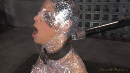 Мужчине захотелось чего-то необычного - он замотал девушку скотчем. Насильно связал девушку, оставив открытыми только рот и нос (чтоб дышать могла). А на шею хомут телочке одел. И жестко отымел симпатягу в рот. Мужчина насиловал и насиловал девушку, изредка давая ей отдышаться.