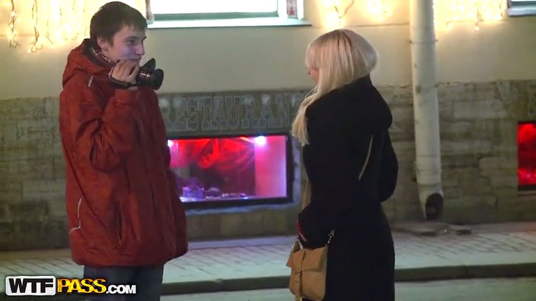 Блондинка стояла кого-то ждала на мосту. Мимо проходил молодой человек с камерой, у которого завелся разговор с незнакомой девушкой. Расспросив чем та занимается, он предложил поучаствовать в любительском видео. Для него это якобы хобби и такие симпатичные особы как раз подходят для съемки. По пути в сторону его джипа новоявленная модель выложила все свои секретики, рассказала о себе и после направилась в квартиру к парню смотреть что получилось. Там он предложил сделать еще пару записей, для которых пришлось раздеться, а там оказалось до секса рукой подать, через несколько минут пара уже кувыркалась.