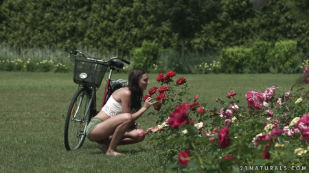 Нежное создание приехало на велосипеде понюхать различные цветочки, погулять на свежем воздухе, послушать пение лесных птичек, а главное - встретиться со своим молодым человеком, появившимся как всегда внезапно. Нежно приобняв любимую и поцеловав, он усадил брюнетку на багажник велика и повез к березам, где откупорил худенькую, но очень шикарно выглядящую со стороны, попку. Двухколесный друг остался наблюдать со стороны как трахают хозяйку до самого конца, пока сперма не оказалась на сдвигающемся обратно анусе после члена. Легкий ветерок приятно обдувает уставшую красивую пару.