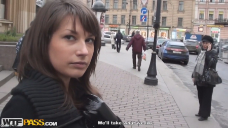 В данный раз пикаперы Антон и его оператор Илья потерпели множество неудач. Не все девушки в центре Питера отшивали подонков, некоторые знакомились, но дальше дело не заходило, другие просто проходили мимо, пытаясь не показывать свой испуг и отвращение от ситуации. Наконец, попалась прохожая с именем Рита. Девушка никуда не торопится и с удовольствием согласилась провести время вместе с новыми знакомыми в заведении. После длительной беседы блудницу проводили в туалет, где трахнув, оба парня кончили на лицо снятой на улице шалавы. Метка на заднице поставила точку перед тем, как друзья покинули ее, оставив трусики трофеем.