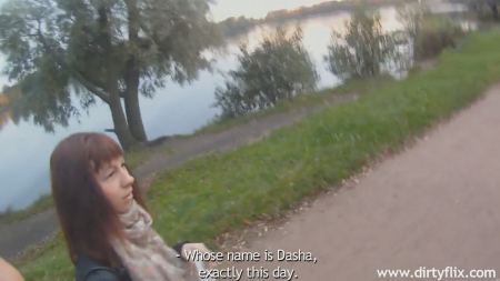 Пикапер заприметил девушку с прямой челкой, к которой поспешил присоединиться в прогулке. Она не против поговорить и немного опешила, когда незнакомец назвал ее имя - Анастасия (хотя в субтитрах для зарубежного пользователя перевели как Даша). Негодяй запугал страшными историями про этот парк, где гибнут люди, прямо в этой воде, дав почитать какую-то газету. Заговорив зубы, он отвел идущую с работы девушку в чуть менее людное место парка на Озерках и трахнул для прерывания круга несчастных случаев. И последнее что нужно сделать для ритуала - взять любой предмет и выкинуть его в озеро. Такой бред было тяжело прослушать, особенно с не самой хорошей экшн-камеры.