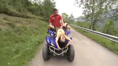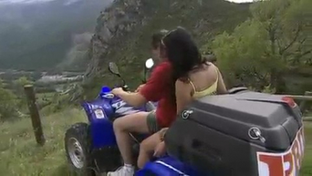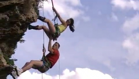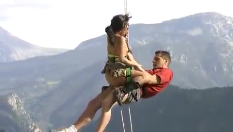 Ребята просто обезбашенные. Им не интересен обычный секс, любовники предпочитают экстрим. Сначала девушка отсосала бойфренду во время того, как мужчина рулил. И кстати, была оттрахана на полном ходу транспортного средства. Затем парочка нашла еще более невероятное место для любовных утех - обрыв. Точнее, молодые люди спустились до середины скалы на тросах, а потом остановились и вот на этой высоте (весящие на тросах над обрывом) продолжили свои сексуальные игры. Ведь это так возбуждает и дарит незабываемое блаженство.