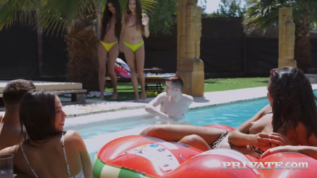 Отличная компания из восьми человек собралась во дворе большого частного особняка отдохнуть по-настоящему. Впереди зима и не будет возможности круто оторваться братвой, потому ребята берут от жизни все здесь и сейчас. Девчонки ходят топлес с напитками, парни в шортах также с оголенным торсом. Без огня оргия началась, все равно к этому бы и пришло в таком раскладе. Здесь нет конкретных пар, кто кого выбрал, тот с тем и трахается, меняясь местами, удовлетворяя то одну, то вторую. Все как одна - симпатичные, загорелые, отдохнувшие и кончившие. До заката солнца еще далеко, время остается поговорить по душам.