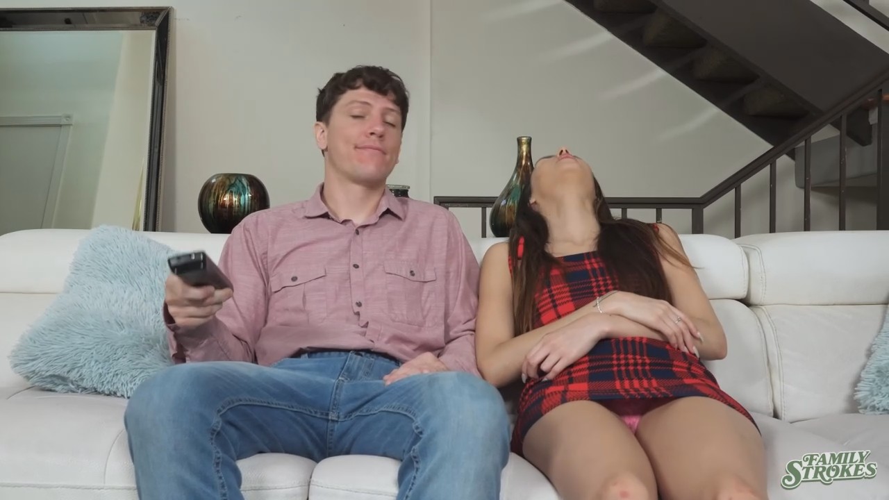 Сводные родственники просиживают штаны за просмотром телевидения. То что смотрит брат очень не нравится сестре. Она называет его вкусы помойкой и пытается отобрать пульт чтобы переключить канал, но тот сопротивляется, а силенок бороться с негодяем не хватает. Тогда ребята сошлись на мнении: нужно поработать ротиком, иначе никто не уступит. Так и поступила девушка, наслаждающаяся просмотром тупого шоу, заглатывая хуй уставившись в телек. На следующий день все повторилось, только на этот раз братик заранее припрятал пульт, придя с ним в комнату и размахивая. Борьба за него продолжилась инцестом.