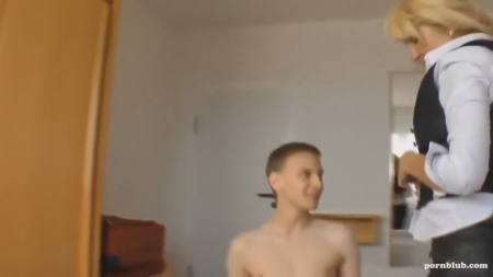 Женщина в самом соку была приглашена культурно отдохнуть молодым другом своего сына, который оказался по уму намного старше отпрыска. Пацан знает как ухаживать за женщиной любого возраста, да и предпочтение отдает опытным лядям. После похода в кино, разновозрастная пара остановилась на несколько часов в отеле, где есть кроватка чтобы провести время наедине. Женщина дала время снять штаны с футболкой, пока отсасывала, поняла, что и самой следует раздеться да дать впендюрить в увлажнившуюся шмоньку. Узкая дырочка вкупе со стонами побудили добра молодца закончить на попу дамы, удобно стоящей на коленях после позы наездницы.