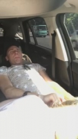 Когда белокурая подруга залезла сверху на водителя, сидящего в своем сиденье, тот включил запись на телефоне, который используется как навигатор в поездке. Самое клевое тут - это стоны девушки, она просто изнывает на члене в позе наездницы, совсем не боясь быть увиденной из проезжающих автобусов и маршруток, что повыше их тачки, заполнившейся запахом секса. Меньше пяти минут кайфовала телочка, а потом слезла чтобы приятель смог кончить в ее сладкий ротик. На 146% пару кто-то заметил.