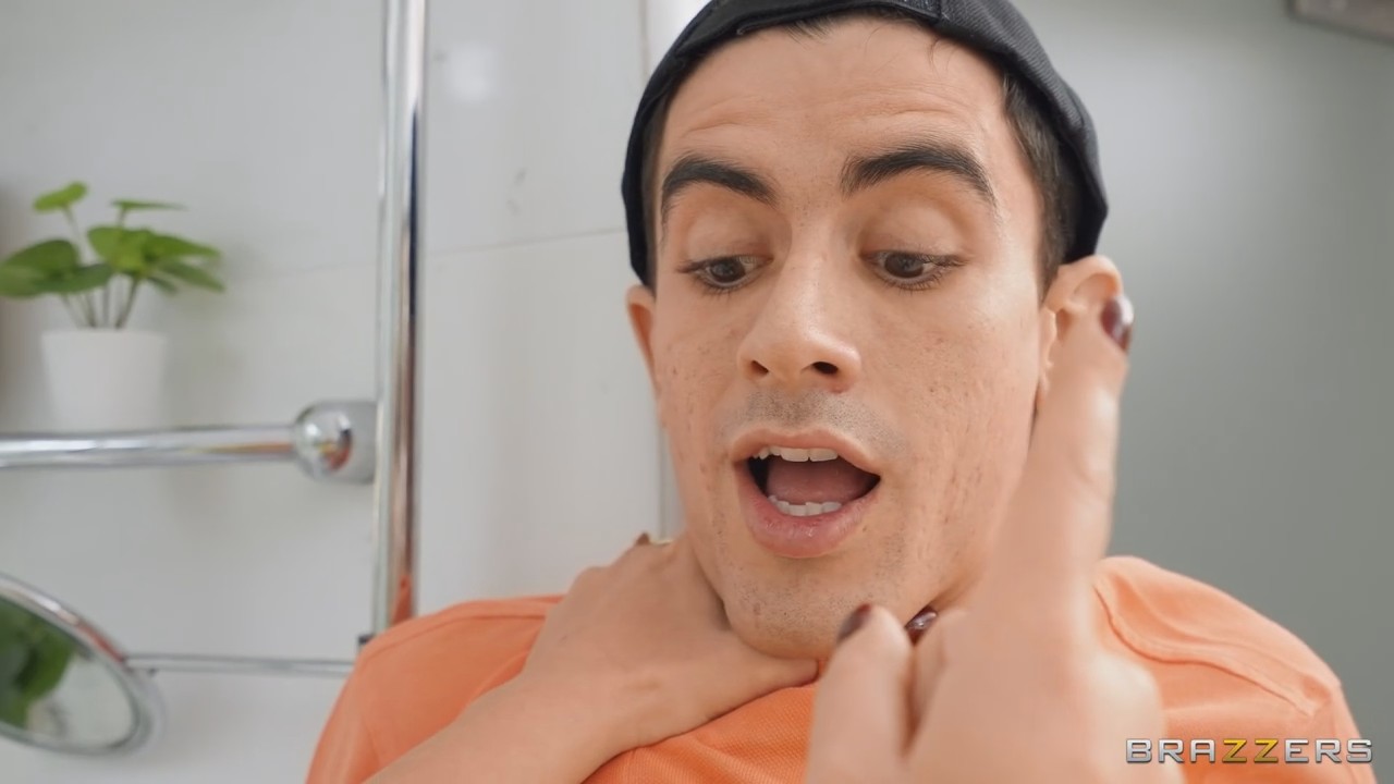 Два утырка играют на приставке. Подошла белобрысая мать дать подзатыльник своему спиногрызу за плохие отметки по учебе. "Вот бы ты был как твой друг Джорди. Мне он нравится" - процитировала сама себя мамаша, чуть покачав сиськами в стороны и попрощавшись известным жестом. Гость все равно уже проиграл и типа пошел в толчок, где увидел в раскрытую дверь как маман товарища делает селфи со своим бюстом на телефон. Долго парень не смог скрывать и был замечен, затащен внутрь и одарен возможностью как следует оторваться. Любовники долго занимались оральным сексом и петтингом, пока разгоряченный пацан не всадил хуйца в пилотку грязной бабе.