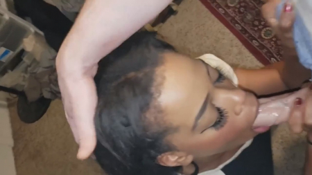 Опытная шоколадка точно не первый день в оральном деле. Пылесос-хуесос чтобы было приятней ее белому дружку сняла с себя трусики, дав ему возможность любоваться округлой пятой точкой, пока она сидит на полу, работая сладким ротиком. Ее не смущает камера возле симпатичного лица (что довольно редко для этой расы, но исключения есть везде), которая снимает весь заглот пениса с прожилками. Когда оператору кажется, что недостаточно глубоко, он заставляет им подавиться, придавливая голову как можно ближе к лобку. Кончать парнишка собрался на лицо, а попал на самое нелюбимое место для этого у девушек - на волосы.