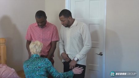 Вот внучек когда подрастет ахуеет от бабушки, которая пекла индейку на День Благодарения и давала на мороженое пока родители не видят, а эти деньги заработаны съемкой в низкокачественной порнухе, где бабка марала зад о негров. Веселая картина получается. Так случилось, якобы 64-летняя женщина (на самом деле 56 годиков) большую часть жизни провела в чернокожем коллективе, соответственно, в ее любовниках только негры, которые пришли в одно время поздравить белобрысую короткостриженную тетку с днем рождения. Подарок они принесли одинаковый - свой хуй, которым обрадовали сразу вместе, отъебав во все щели развратную бабусю.