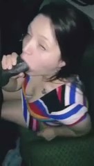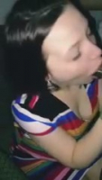 Щечки чернильницы сдуваются, когда та пытается высасывать жизненные силы из африканского шамана. У него даже головка черная, будто тонированная - именно это привлекает его к белокожей самочке. Она старательно заглатывает на сколько может в почти полной темноте, ее лицо подсвечивается лишь светом от мобильного телефона, на который снимает негр. Шпага у него довольно большая, богатырская и очень быстро ослабела когда потенциальный рэпер спустил на язычок подруги, спрятавшей по рефлексу его в ротик, хотя хозяйка не сильно этого хотела. Абсолютно безмолвная домашняя порнушка получилась.