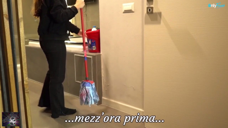 Супруги после осмотра ближайших районов вернулись к себе в номер. Уже с порога они услышали жалостливые просьбы освободить - голос уборщицы доносился из ванной. Часом ранее она пришла помыть ванну и рукой застряла в сливе. Хер знает как такое возможно, но типа так случилось. Первым побежал "на помощь" мужчина, погладивший чужую задницу, шлепнувший по ней ладошкой и спустивший с незнакомки штаны. Не успел он нормально ее потрахать загнутую, как прибежала жена, на итальянском устраивая разнос изменщику. Хотя у самой так намокло между ног, что жена разделась, разрешив трахать застрявшую уборщицу и сама еще попутно отдалась, тыкая пальцами в ее пилотку.