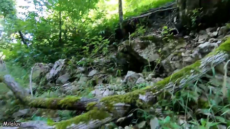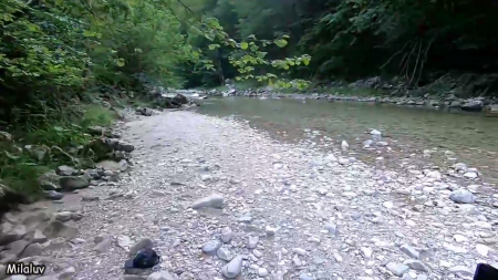 Только ебырь начал вести съемку, по тропинке недалеко прошли люди. Девка тычет в них пальцем, но пора начать сосать, прежде чем трахаться на камнях. Пара специально приехала поебаться на природу, взяли с собой плед, стулья, одежду на случай дождя. Беспрекословно деваха взяла в рот, пока парень забавлялся с ее сиськой, потом легла на бок поближе к природному навесу из земли и корней деревьев. Это было на боку, следом поменяли позу на наездницу, на сладенькое оставили по-собачьи. Не успел он толком обкончать спину, сзади вышли туристы с телефонами, снимающие прудик. Какое же популярное место, не дают нормальным людям потрахаться!