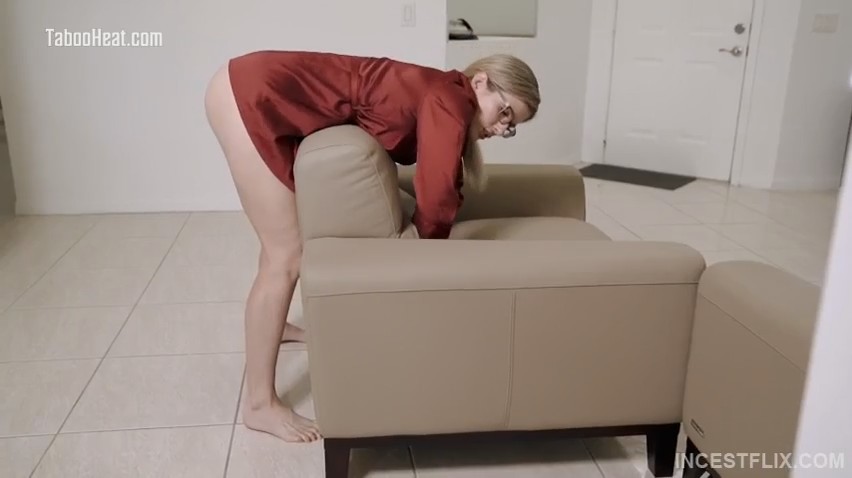 Женщина будто что-то потеряла в новом микродиване, больше похожим на кресло. Она пихает в щели руки, шарит там и, конечно же, застревает обеими конечностями. Вскоре приходит сын, который с ухмылкой выслушивает историю мачехи и, вместо помощи, задирает ее домашний халатик, вставляя сперва в киску очкастой, а потом и в жопу. Даже когда одна рука освободилась, мамочка не стала пытаться прогонять парня, она смогла перевернуться на спину, чтобы мальчик по очереди вынимал из одной дырочки и вставлял другую. Сегодня еще ему удалось узнать, что жена бати ой как любит глотать.