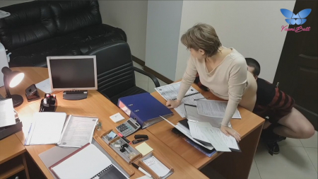 Короткостриженная коротышка на каблучках закрыла дверь в кабинет, заперевшись внутри с коллегой или может быть даже начальником. Нередкое явление когда девушки спят с высшими по рангу в цепи работы вечерком. Сперва россиянка успешно отсосала, после чего закинула одну ногу на стол, выставив мягкую попку для любовника. Сверху это снимает офисная камера, к которой у них есть доступ, чтобы дальше слить запись в интернет. Опосля работница перевернулась кверху пузом, уронив важные бумаги на стол. В такой позе ебырь обкончал ее лобок. Вот теперь можно отправляться домой.