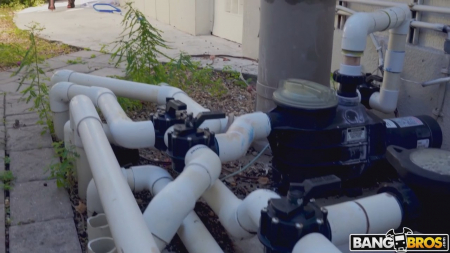 Латинки любят поболтать впустую по телефону. Эта женщина жалуется подруге, что бассейн ни черта не работает и она вызвала сантехника, который сильно опаздывает. Наконец-то он постучался, зашел внутрь дома и получил первую пощечину за то, что пялился на сиськи аргентинки. Второй удар последовал на улице, там торчащие через одежду сосочки уж совсем были заметны. Пока сантехник делает свою работу, дама приоделась поприличнее и вышла угостить соком, потащив крупного парня в спальню. Там началось лечение от недоеба, который сделал из женщины человека. Силенок мужика хватило, чтобы вступить в позу 69 на весу.
