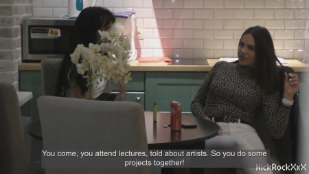 Девушка вернулась уставшая домой и сразу предупредила бойфренда - скоро придет подружка, она хорошая, должна ему понравиться. Вот это случилось, парень оставил их на кухне, а сам принялся смотреть порнушку на телефоне и уже собирался от скуки подрочить, как вдруг подруга приходит и говорит, что знакомая застряла в шкафу. Убедившись как ситуация серьезна, негодник предлагает гостье по-быстрому отсосать его хуй, а потом они возбужденные стягивают обтягивающие штаны застрявшей и трахают ее, после чего освобождают от заточения и полноценно занимаются групповухой в комнате.