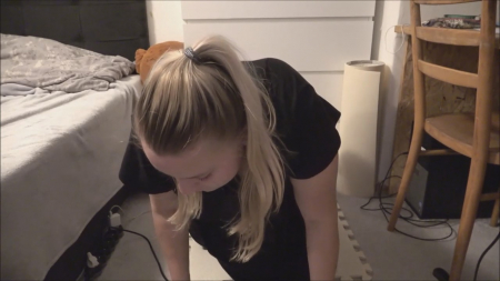 Ну что, мои маленькие любители крупных девочек, вот вам заграничный экспонат, достойный внимания. Молодая, но уже отожранная самочка демонстрирует бугристые ляжки огромной жопы, после чего приклеивает свой самотык к комоду на таком уровне, чтобы можно было стоять на коленях. Удобно, ничего не скажешь, и менее удобно когда она использовала шкаф, чтобы чтоя изогнуться в пополам и чуть его на себя не уронить. Это все от лукавого, дальше она традиционно держит ноги в воздухе, упав на спину, и собственноручно вгоняет внутрь маленький для ее крупногабаритных размеров самотык на кровати.