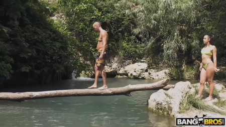 Милейшая брюнетка сидела одна возле воды, наслаждаясь шумом водопада. К Настюхе подошел познакомиться лысый парень, которому не было отказано в беседе. Девочка вообще не против раздеться перед ним, потрясти откровенно возбуждающей попой и заглотить его толстый член при других ребятах. Она самая красивая сучка в его жизни, совершенно безотказная и затыкается латинка только когда ее рот занят хуем альфа-самца. Совершенная пилотка продрочена самой хозяйкой и уже только потом новым входящим в нее гражданином, сумевшим довести до блаженства симпатичную потаскуху, ебущуюся со всей латиноамериканской страстью под звуки падающей воды.