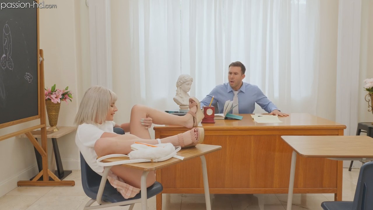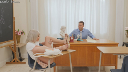 Утро началось не с кофе, а с неожиданного оргазма во сне. Блондинка крепко спала обнаженной и вспоминала школьного учителя, на счет которого фантазировали все девчонки и часто мастурбировали. Она будто вновь оказалась в тех годах, но теперь она сама постарше, а парень будто не замечает как его подопечная раздвинула ножки за партой и начала ласкать свою киску. Но раз есть он, то нужно воспользоваться его членом, который девчонка нарисовала на доске. Это был классный секс на столе, сама хозяйка влажной дырочки во сне обкончалась так, будто ее трахали на самом деле.
