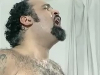 Пузатый любовник сидел на унитазе, дожидаясь когда его пассия закончит помывку. Она протянула ему ножку, чтобы он ее любезно вытер, но халат мужчины распахнулся и там стал болтаться его хуй. Дама начала дрочить ногами, а потом подошла поближе и сделала прекрасный минет, оставив толстяка так и сидеть на унитазе. Заниматься изменой любовники пошли на кровать - брюнетка всегда с удовольствием дает в попку и вообще она сильно возбуждается когда думает "как хорошо, что муж ничего не знает, работает там на благо семьи, а я отдыхаю" - только когда героине кончили в рот, старый знакомый пообещал все рассказать супругу, заставив этим шаболду расплакаться.