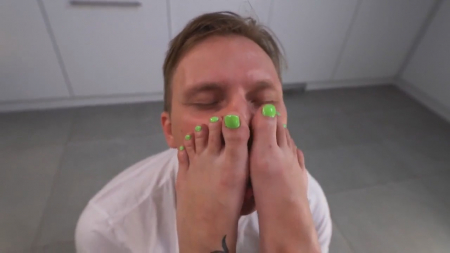 Жена проснулась раньше мужа и пошла позавтракать бананом сидя на столешнице. Вчера муж не заметил свежие ногти на ногах, но сегодня похожий на немецкого солдата мужчина не смог оторвать от них глаз, его руки захотели помассировать женские ступни, а пальчики засунуть себе в рот и сосать их. Супруге понравилось не меньше, так как после мастурбации между ступней члена любимого, она и сама дотянулась до своего рта, пока пенис входит и выходит из ее сладкой дырочки. Никогда его так еще не возбуждала естественная женская красота и, похоже, кто-то станет фут фетишистом.