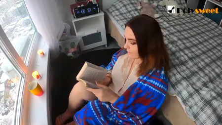 Пухлая девушка заранее постелила на пол какую-то дубленку, расставила зажженные свечи по подоконнику и села рядом, начав читать книжку. Романтическую обстановку под спокойную музыку разбавил ее партнер, очень похожий на пидорка (это не голословные заявления, можете убедиться сами). Долго размусоливать голый чувак не стал и сразу поставил подружку рачком перед пространством между окном и кроватью, приступив ее трахать сзади. Чуть позже он поднял ее на ноги, она все также была загнута и присела лишь для того, чтобы ей надрочили на сиськи пару капель.