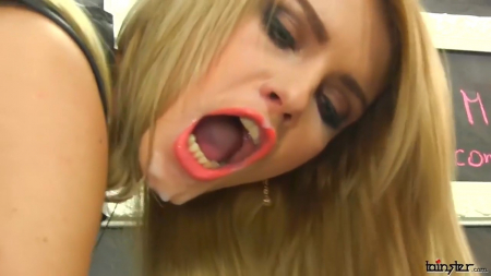 В уборной перед туалетом героиня с кем-то поговорила по телефону, ожидая, что к ней придут, пока сама ходила из стороны в сторону. Неожиданно, из стены появился резиновый член, который с большого расстояния пульнул мощным залпом фальшивой спермы со спины, испачкав неплохую юбку. Сделал он так еще несколько раз до того момента, пока гламурница не начала его сосать на корточках, насадив пилотку на шишку загнувшись на выпрямленных ногах. С каждой минутой все больше и больше искусственной малафьи было на теле клубной тусовщицы, пока ее всю с ног до головы не залило вязкой жидкостью.