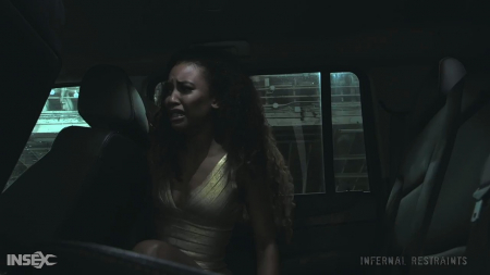 В одной машине с агентами ФБР должно было быть безопасно, но сперва они свернули в непонятное место, а потом этих двоих якобы расстреляли в гараже, а пассажирку усыпили. Очнулась жертва зафиксированная по рукам и ногам полностью голой и поняла - над сей будут издеваться током те, кто должен давать безопасность. Первым начал извращенные действия черный водитель-полицейский, дав в рот и влагалище фигуристой дочке политика, а потом пришла и белокурая женщина, севшая на лицо негритянки. Они надели пакет ей на голову и подключили шлангом к выхлопной трубе машины, заставив задыхаться и умолять дать позвонить отцу, чтобы он заплатил выкуп.