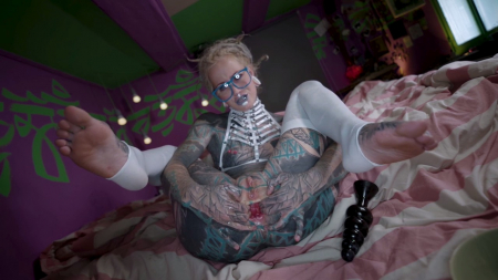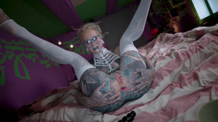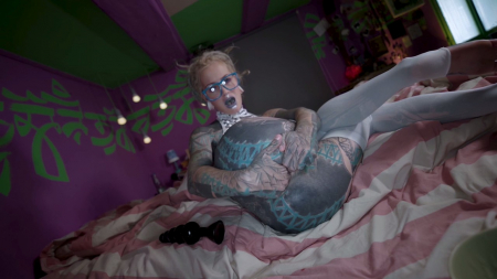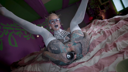 Вся в татуировках, но достаточно симпатичная неформалка в очках решила показать как подготовиться к полноценному анальному фистингу. Она знает о чем говорит, ведь это любимая ее мастурбация, да и если посмотреть любой ролик модели, там будет что-то подобное. Красавица подробно объясняет свои ощущения, описывает боль и приятные моменты с секс-игрушкой, а под конец ее растянутая попка действительно умудряется принять небольшой девичий кулачок. Только теперь интересно для кого она подготовила себя: для мужчины или для другой девушки?!