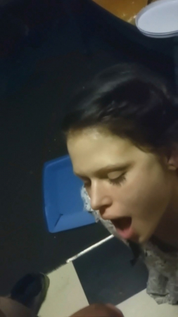 Парень включил любительскую порнушку с оральными заглотами на экране своего компьютера и подозвал подругу, снимая ее на мобильную камеру. От стеснения та закрыла лицо ладонями и прощебетала, что не готова сделать ему минет. "Ну почему?" - возмутился боевой самец, принявшийся расстегивать свои штаны, тем самым предлагая ему пососать. Покорная девка села на корточки между его ног и начала брать в ротик только начавший подниматься половой орган. Как оказалось, ничего страшного в этом нет, только редкие рвотные позывы заставляют иногда немного сбавлять скорость и глубину заглота немалого "дружка".