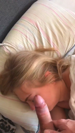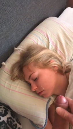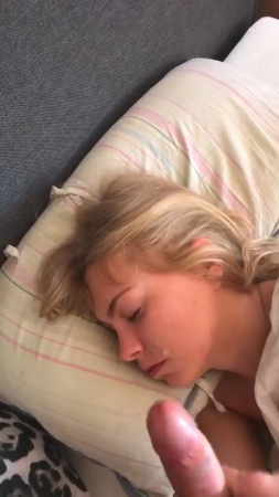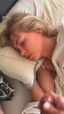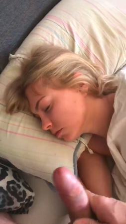 Пара уже достаточно давно живет вместе, поэтому парень ничего не стесняется, связанного с сексом с подружкой. На этот раз он, вооружившись мобильным телефоном и включив на нем запись видео, подошел к своей любимой и начал дрочить член рядом с ее головой. Она на данный момент все еще спала и вот-вот готова была проснуться, но он ускорил процесс, кончив на лицо с закрытыми глазами. Даже не удивившись, милая хотела пожелать доброго утра, но произнесла только "Oh, my God!".