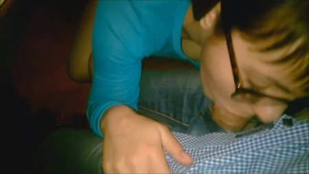 Пара, состоящая из парня с камерой и его молоденькой подружки в очках, пришла в забегаловку, чтобы выпить немного вкусного спиртного, покушать, а также чтобы малышка сделала минет под столом, умудрившись засветить сиськи пока никто не видит. Да никто и не заметил бы, ведь посетителей не видно, официанты не подходят, поэтому без всяких преград симпатяга отсасывает приятелю за столом, дав кончить себе в ротик с последующим проглатыванием белка и запиванием напитком. Зато член чистый и штаны не испачканы, а вторая половина чека, можно так считать, отработана девушкой.