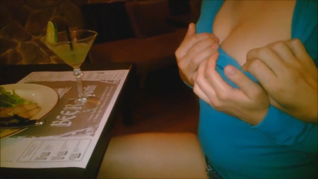 Пошалила ротиком за столом в кафе-ресторанеHD