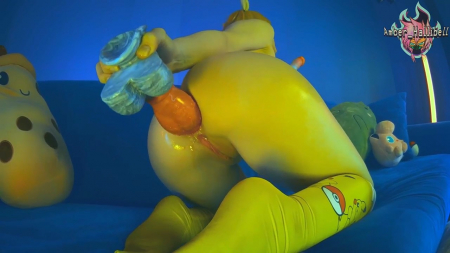 Эш нашел обычный покебол и, уронив его на пол, отпрянул назад - перед ним появился супер сексуальный покемон Пикачу в виде сексуальной грудастой девушки, которая явно что-то хотела показать. Откуда ни возьмись у нее в руках очутился большой фаллоимитатор, с трудом засунутый в задницу. Горячая желтая красотка очень возбуждена, поэтому даже через боль начала мастурбировать задницу, попрыгав на игрушке и сверху. Когда пришла пора заканчивать эротичное шоу, девка надрочила искусственной малафьи себе в ротик, хотя уже и весь живот был в липкой густой жидкости.
