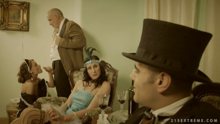 Молодая служанка допустила оплошность - рассыпала угощение, которое предназначалось для гостей. Лысый хозяин обсудил с друзьями как наказать неуклюжую девицу,и все трое пришли к одному варианту. Красивая горничная встала на колени и принялась сосать член. После хозяин заставил телку есть угощение с пола и, загнув секси телочку на кресле раком, вонзил твердый член в ее попку.