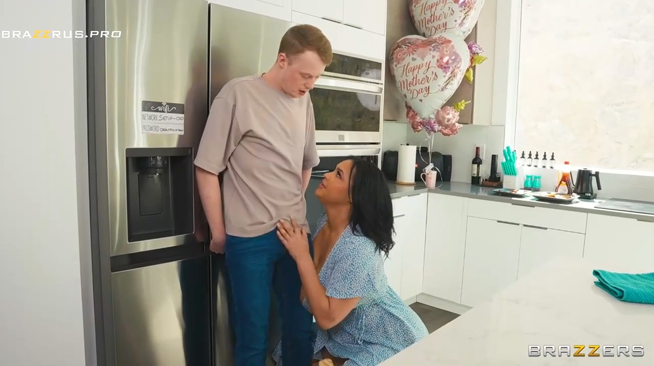 Очень грудастая женщина проснулась раньше молоденького любовника и принялась дрочить красивую смуглую киску при нем. Раздражающий пацан почувствовал знакомые движения рядом и уткнулся в ее грудь лицом, но какая-то сволочь стала отвлекать звонком в дверь. Оказалось, что хозяйка забыла про собственный день матери и это ее дети приехали на торжество. Пока они готовят еду, паренек делает маневр в сторону крупной самки и заявляется официально в гости во второй раз, чтобы можно было сделать вид, что он не пытается все это время выебать маманю ничего не подозревающего товарища. К его счастью, гости забыли торт дома и отчалили за ним на продолжительное время.