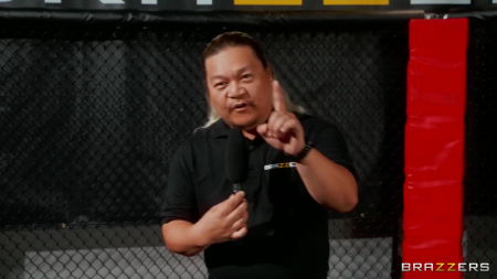 Смешанные бои - довольно интересное развлечение для зрителя, особенно когда в гендерный бой идет парень с девушкой. Довольно быстро ребята перешли в партер и началось самое интересное - высунулся наружу огромный половой орган черного соперника, а также сиськи уже успевшей оголиться ранее девушки. Пришла им пора заниматься оральным сексом в позе 69 и жестко трахаться прямо в клетке ринга. Естественно, у чувака не было никаких шансов победить тугой анал чики - он кончил ей в рот и остался лежать без сил на полу, пока узкоглазый поздравляет с победой тренированную турбошлюху.