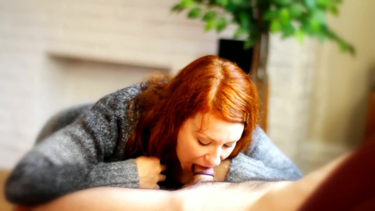 Рыжая милф сосет хуи просто потому что ей это нравится