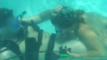 Ныряльщик занырнул в чужой бассейн на такую глубину, что злоумышленника не заметила сексапильная женщина, надевшая очки на глаза, чтобы поплавать. Быть близко к поверхности сильно долго не получилось, так как насильник потянул сочную телку под воду, заставив ее сосать и дрочить его член, хотя та активно сопротивлялась первые секунды, но когда ей перестало хватать воздуха, ей дали несколько раз его набрать в легкие из акваланга - это была единственная правильная модель поведения для жертвы, но незнакомец оказался слишком злодейским - тело всплыло, а он скрылся. Не забываем, что видео - постанова.