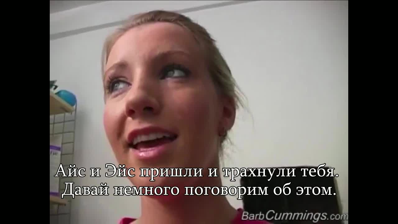 Блондинка в наряде черлидерши хочет забеременеть черным ребенком. Ей совершенно не важно кто будет отцом - Ace или Ice Cold, главное, чтобы текст через пару недель показал две полоски. Наконец, после беседы с мужчиной за кадром блондинка принимается за дело, даже за два - оба члена девица отсасывает и ее начинают пороть с двух сторон длинными шлангами: в ротик и киску одновременно. Сперва кончает один внутрь, потом это делает следующий. Через две недели Барби публично поссала на унитазе на тест, но там одна полоса, а значит в будущем ей нужно будет все повторить. Barbie Cummings - Interracial Breeding.