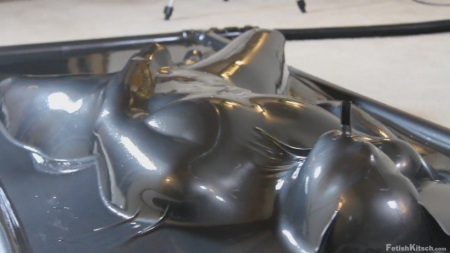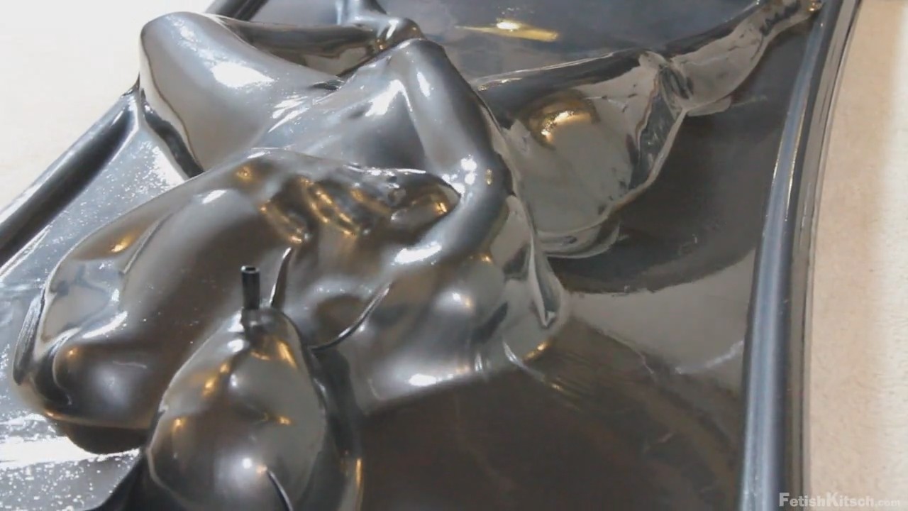 Сексапильная девушка ложится под тонкий слой латекса (материал натянут как покрывало на кровати), а потом этот слой медленно облипает аппетитные формы милашки. Поистине подобное зрелище завораживает и отвести взгляд просто невозможно - так и неотрывно наблюдаешь, как телочка сначала ласкает себя, а потом ей дрочат вибратором.