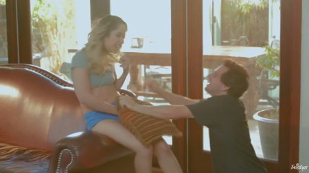 Красивая девушка занимается танцами, а именно - тренируется тверк исполнять. За этим занятием девушку случайно застает ее молодой человек. Но поскольку очаровашка в наушниках, она не слышит, как парень пробирается и немного пугается от неожиданности. Но на место испуга приходит настоящая страсть, когда девушка садится на колени бойфренда и начинает тереться упругой попкой о член. Страстное соитие произошло тут же на диванчике, возле которого милашка и тренировалась.
