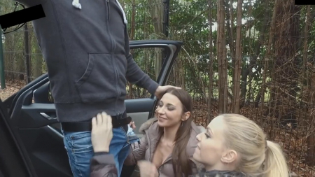 Две очаровательные телки ищут острых ощущений, ведь классический секс им надоел до одури. Девушки в коротеньких шортиках останавливают случайную машину и предлагают незнакомцу свои услуги. Мужчина спрашивает о цене, приняв девок за обычных шлюх, и получает ответ, который очень устраивает его. Подружки садятся в машину и уезжают в лес, в котором девушки и сделали минет незнакомцу.