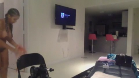 Великолепная деваха трахать себя любит, но делает это с умом - девушка стала зарабатывать неплохие деньги за свои сольные выступления в приватных чатах. Жопастая негритянка для начала разрабатывает дырки - с анальной пробкой в энном месте деваха прыгает на резиновом члене (эдакий заменитель мужчины), позже подключая и вибратор, который симпатяга заботливо прислонила к клитору. Но поскольку зрелищность в данной профессии играет важную роль, очаровашка быстренько собирает механического любовника и подставляет анус под движущийся фаллос.