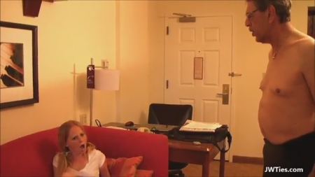 Стройная куколка, думая что дома никого нет, решила приласкать себя на диванчике в гостиной. Какого же было удивление симпатюли, когда в самый неподходящий момент перед ней появился дедушка. Мужчина, возмущенный поведением внучки, начал гневную тираду, но мгновенно сменил гнев на милость как только нежные губки коснулись его члена - малышка то была возбуждена уже и возможность попрыгать на члене использовала. Отсосав длинный хер, деваха залезла на него принялась резво скакать.