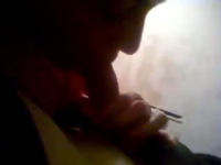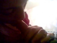 Чем бы заняться, пока единственное лицо, мешающее молодой паре заниматься сексом, это мамка парня, которая пошла готовить ужин? Пока она занята на кухне, а они пролеживают бока в гостиной через стену, самое время повеселиться и черпнуть адреналина. Так что девчонка без лишних уговоров начинает сосать член парня, не взирая на опасность появления мамки в коридоре. Минуты две она делает превосходный, хоть и неопытный минет, но крик матери о том, что пора идти ужинать, резко заставляет ее вздрогнуть, и чуть не откусить кусок хуя.